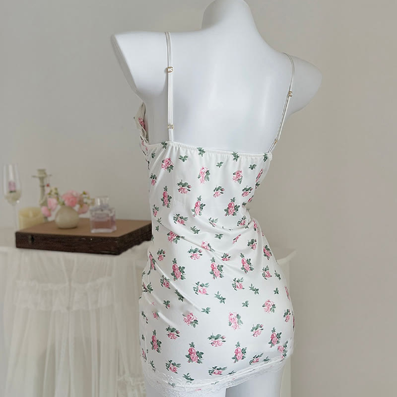 Floral Print Lace Bow Lingerie Slip Dress