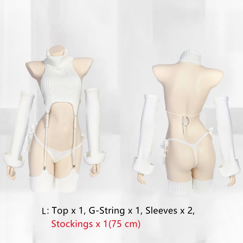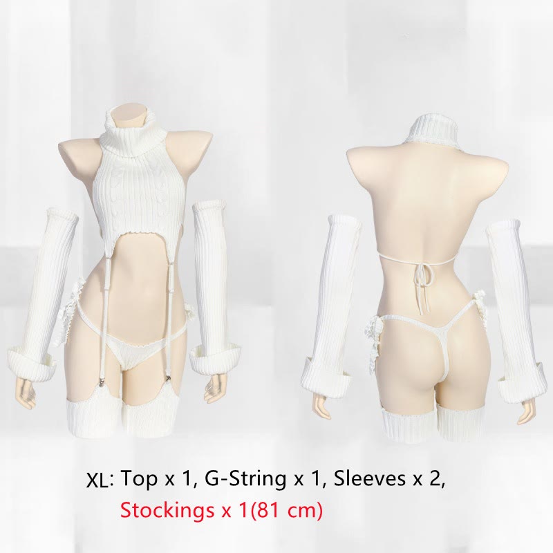 Package Includes: Top x 1, G-String x 1, Sleeves x 2, Stockings x 1