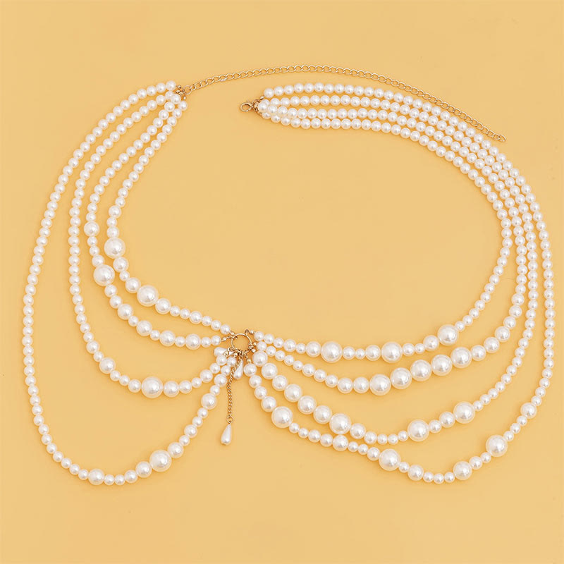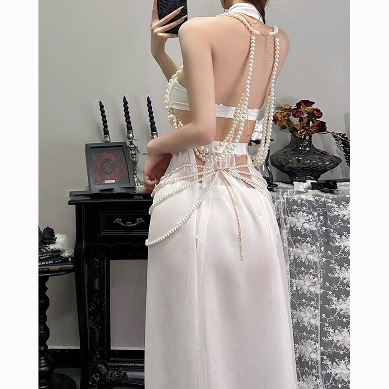 Hollow out See-through Pearl String Slit Lingerie Dress