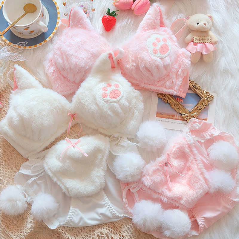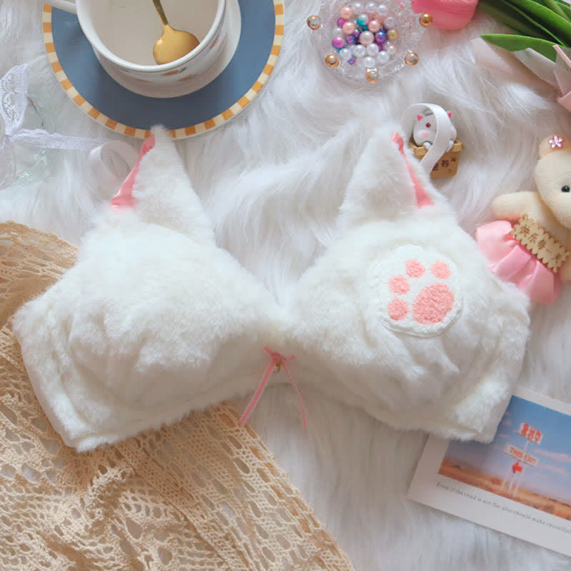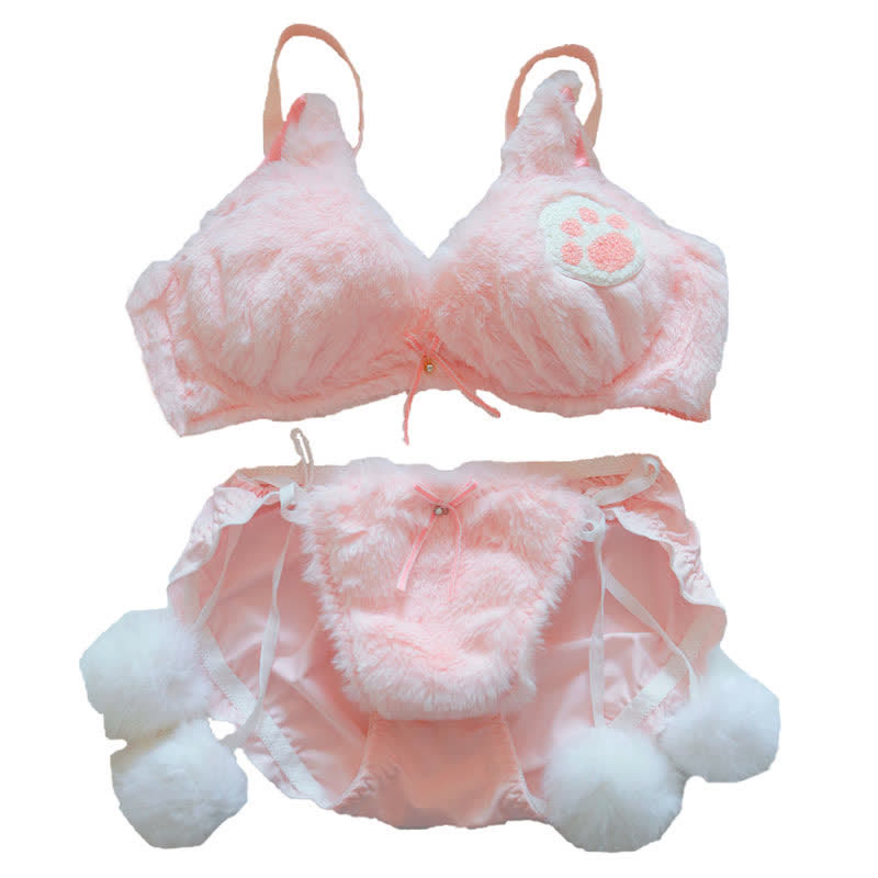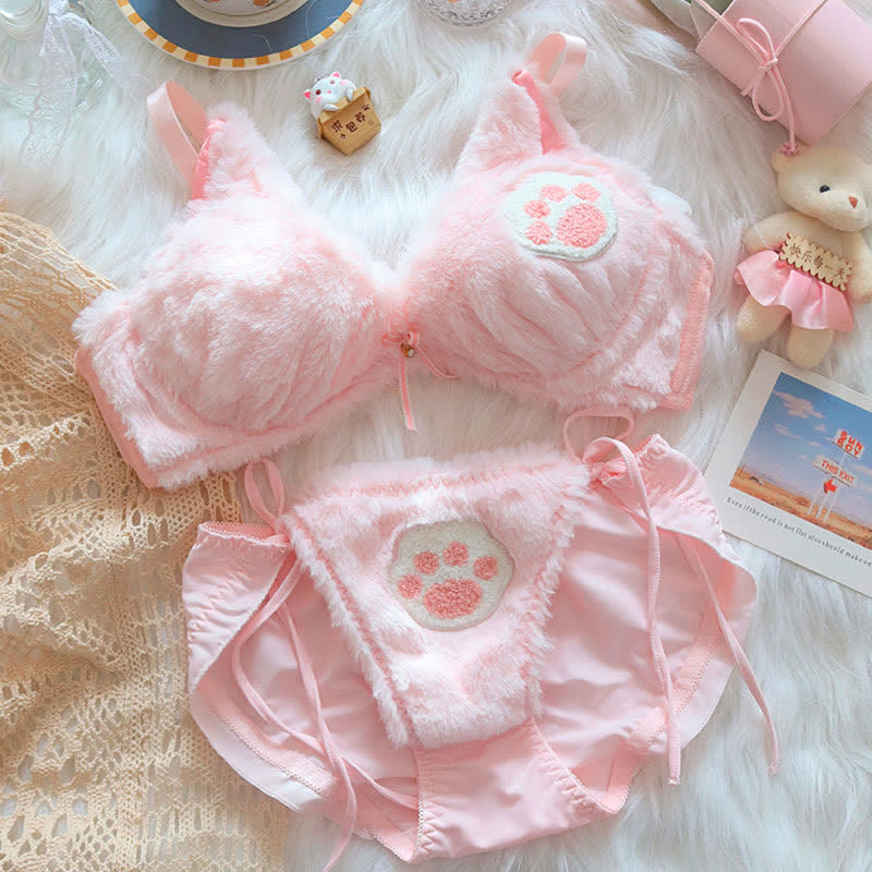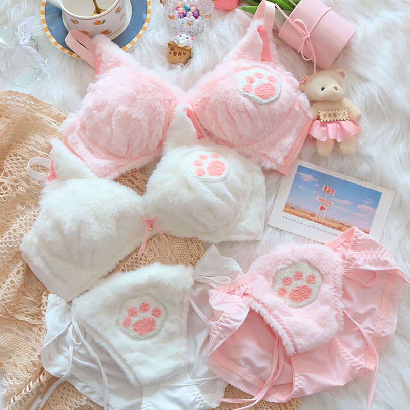 Kawaii Cat Claw Embroidery Plush Lingerie Set