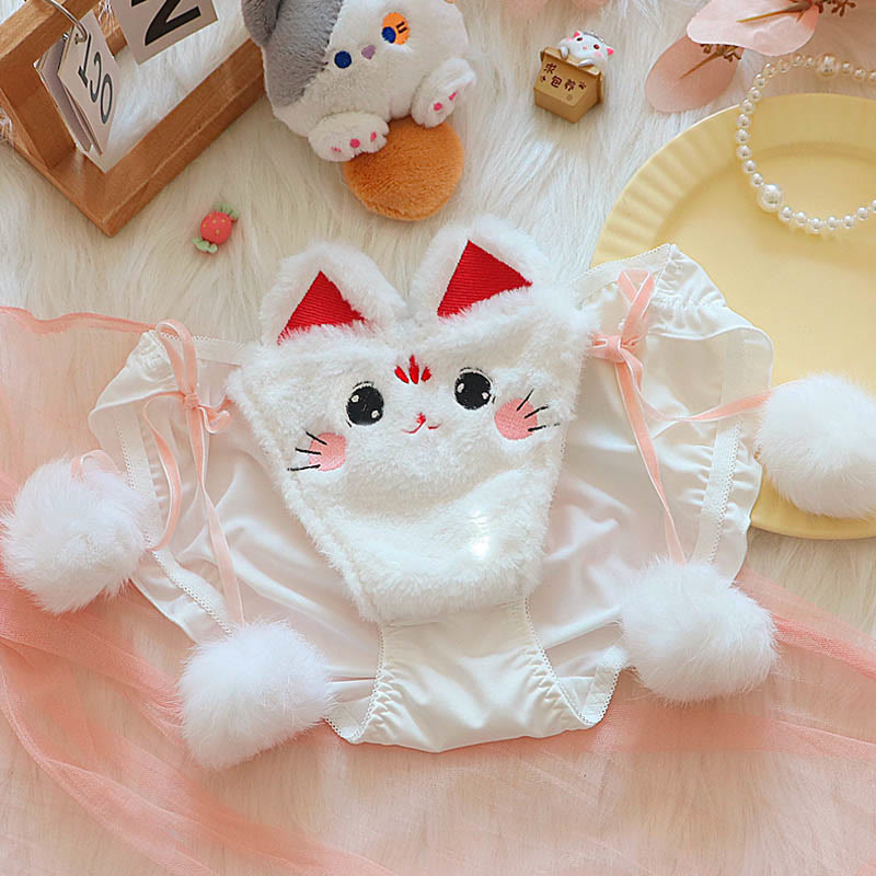 Kawaii Kitty Ear Embroidery Plush Lingerie Set