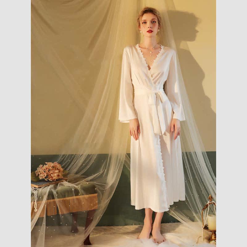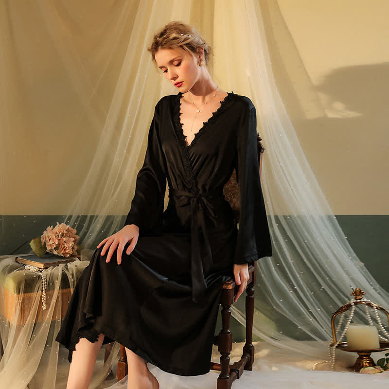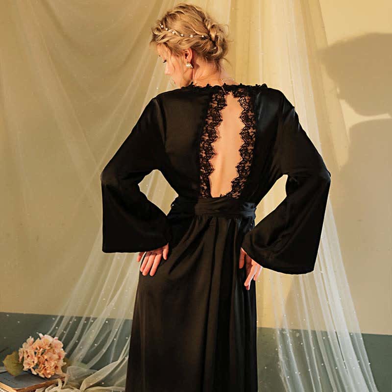 Lace Deep V-neck Backless Kimono Satin Robes