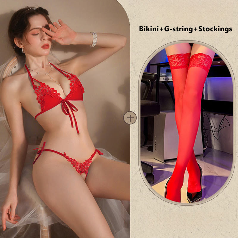 Lace See-through Bikini Lingerie Set