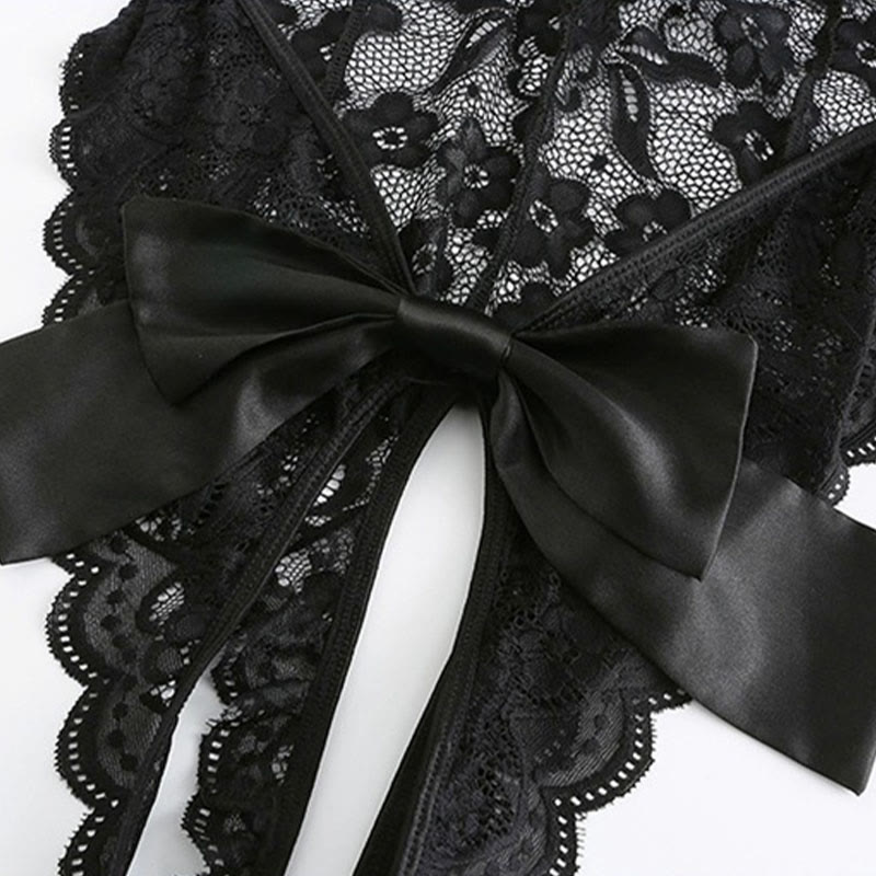 Lace See-through Bow Jumpsuit Lingerie With Breast Pads