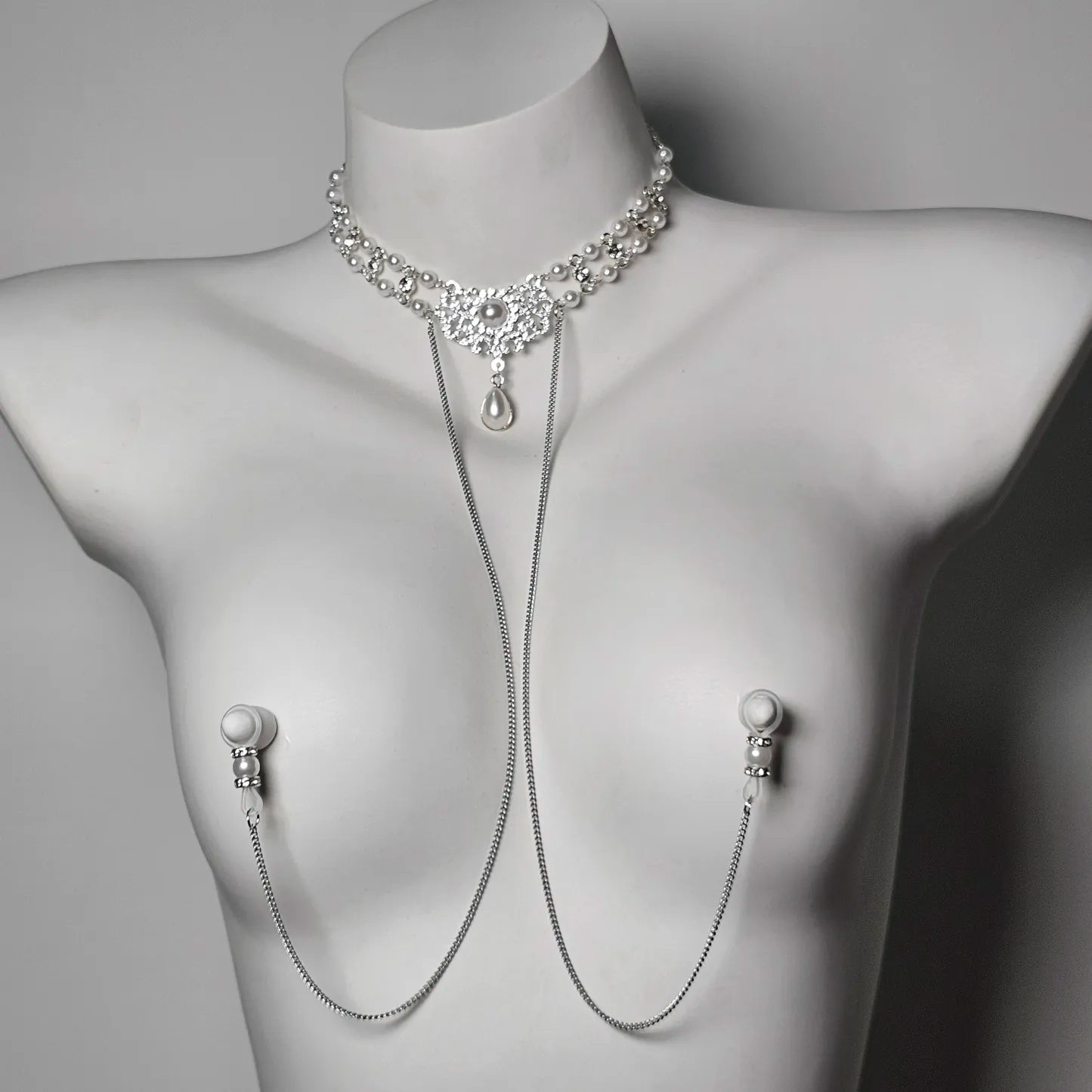 Pearl Choker Body Chain Nipple Clamp Adjustable SM Accessories