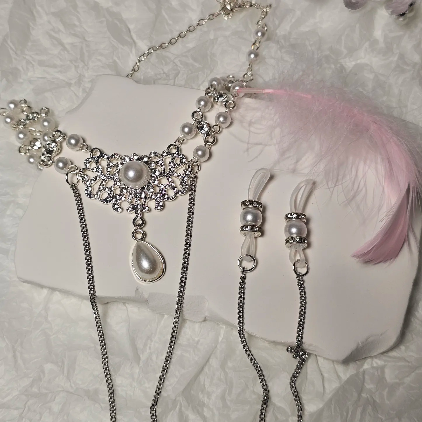 Pearl Choker Body Chain Nipple Clamp Adjustable SM Accessories - image 1