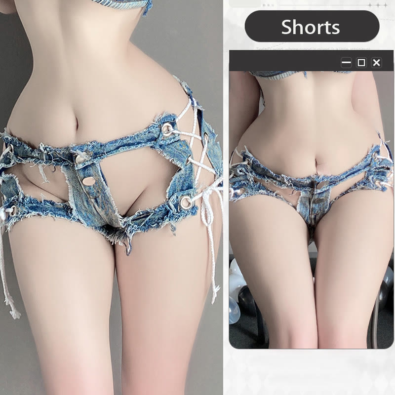 Sexy Denim Bikini Top Hollow Out Shorts Lingerie Two Pieces