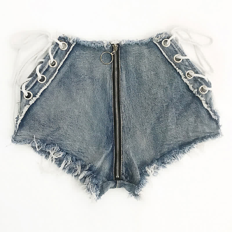 Sexy High Waist Lace Up Denim Shorts Lingerie