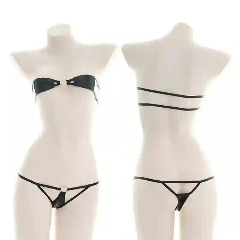 Sexy Hollow Out PU Bikini Lingerie Set