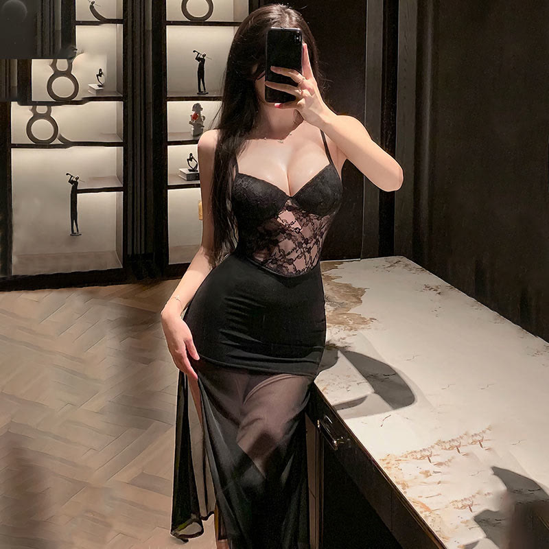 V-neck Lace See-through Slip Lingerie Dress