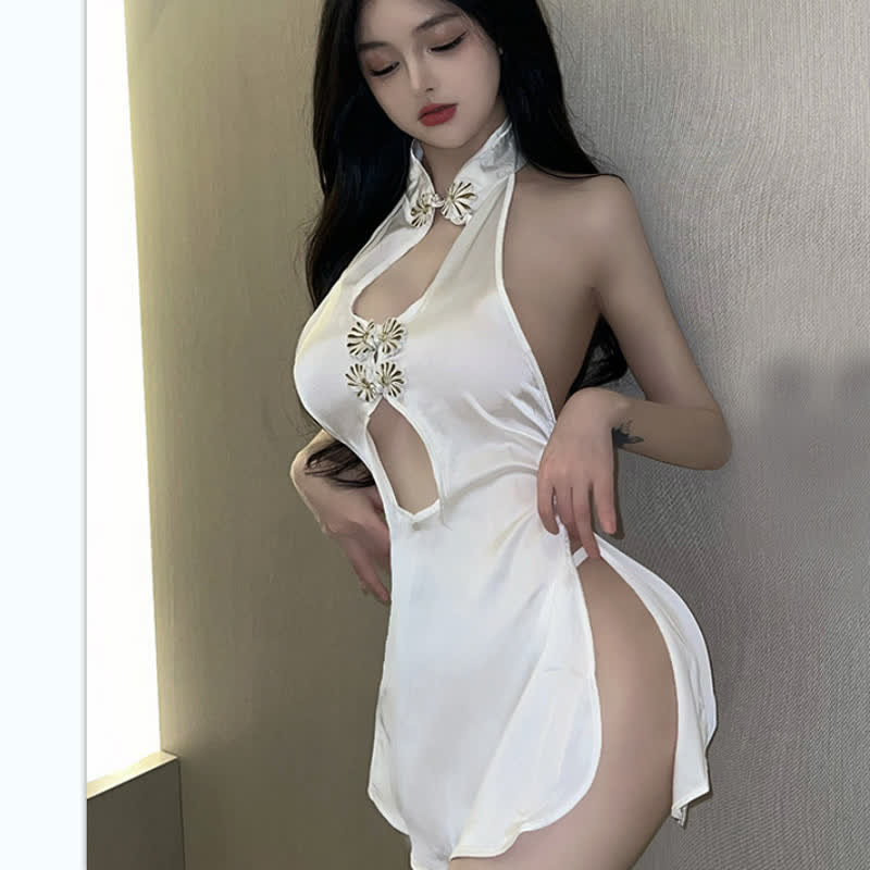 Vintage Buckle Hollow Out Split Cheongsam Dress Lingerie