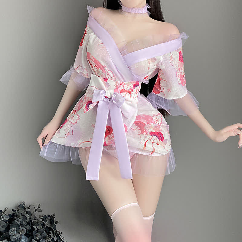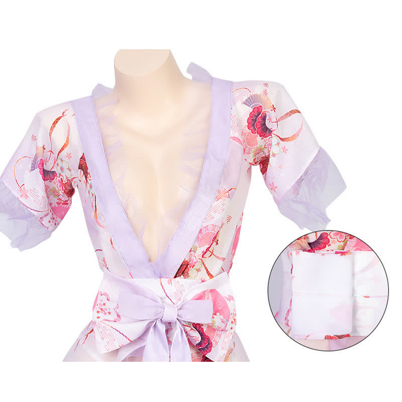 Package Includes: Kimono x 1, Neckwear x 1, Waistbandx 1, G-string x 1, Stockings x 1